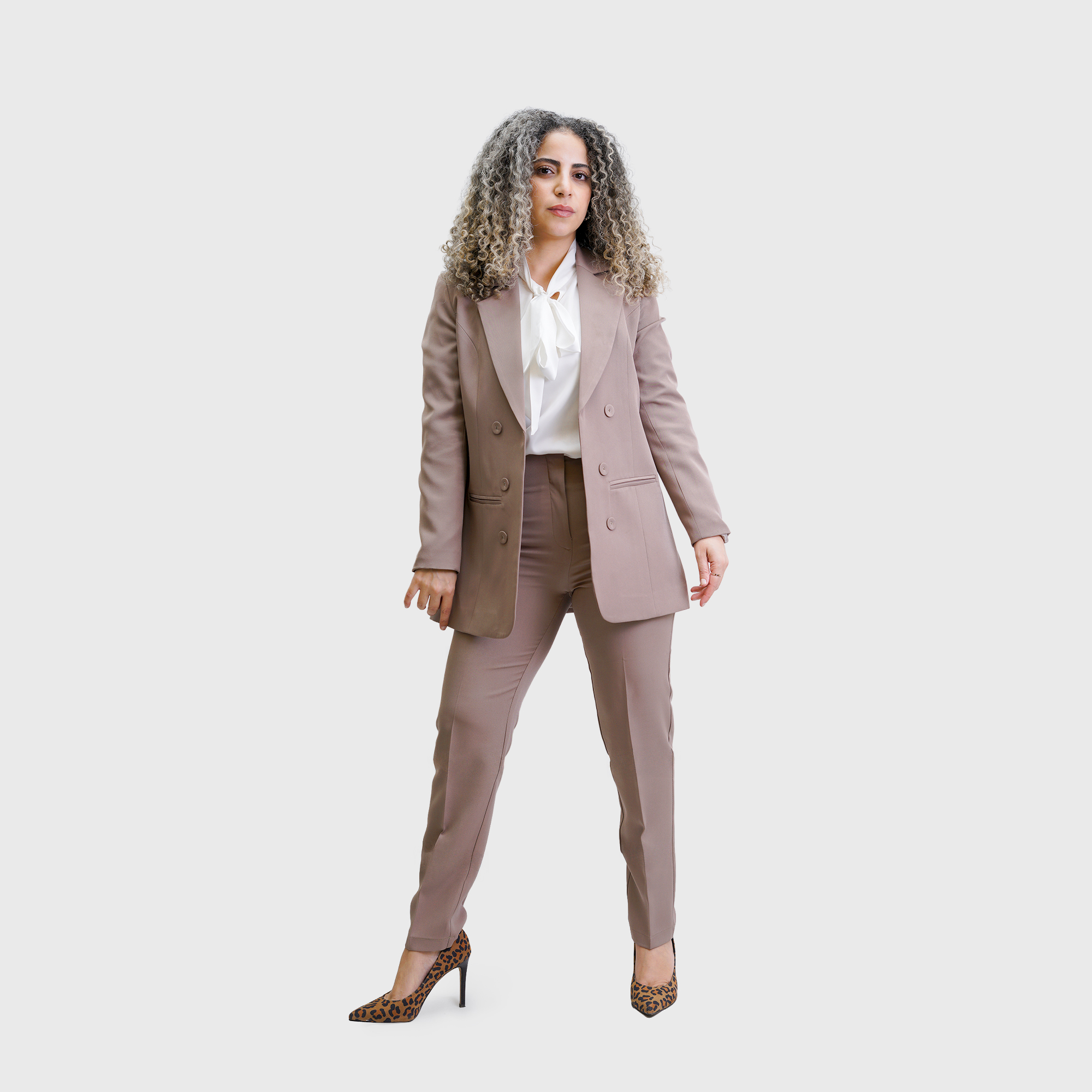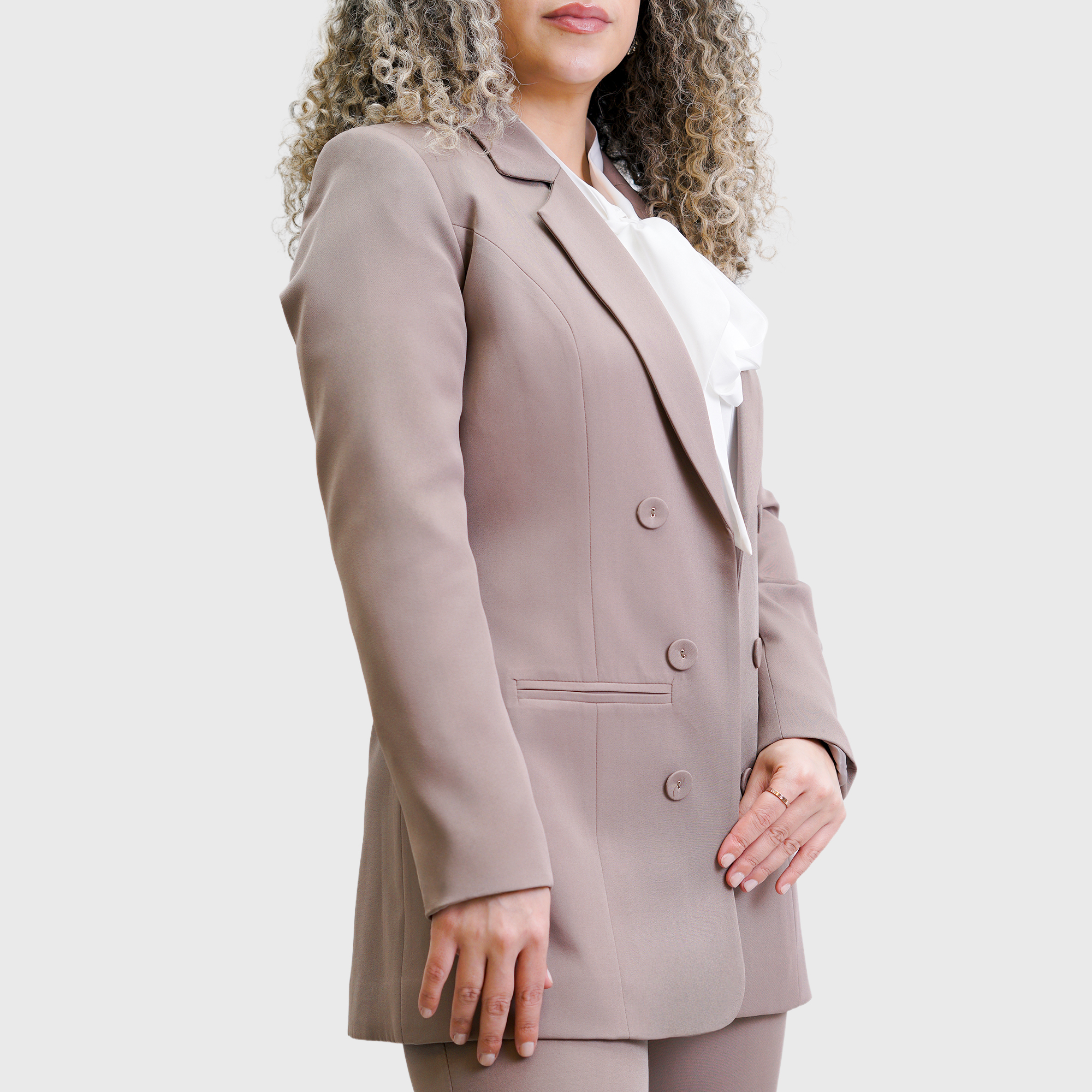 Beige Long plain Blazer with long sleeves, and six front buttons