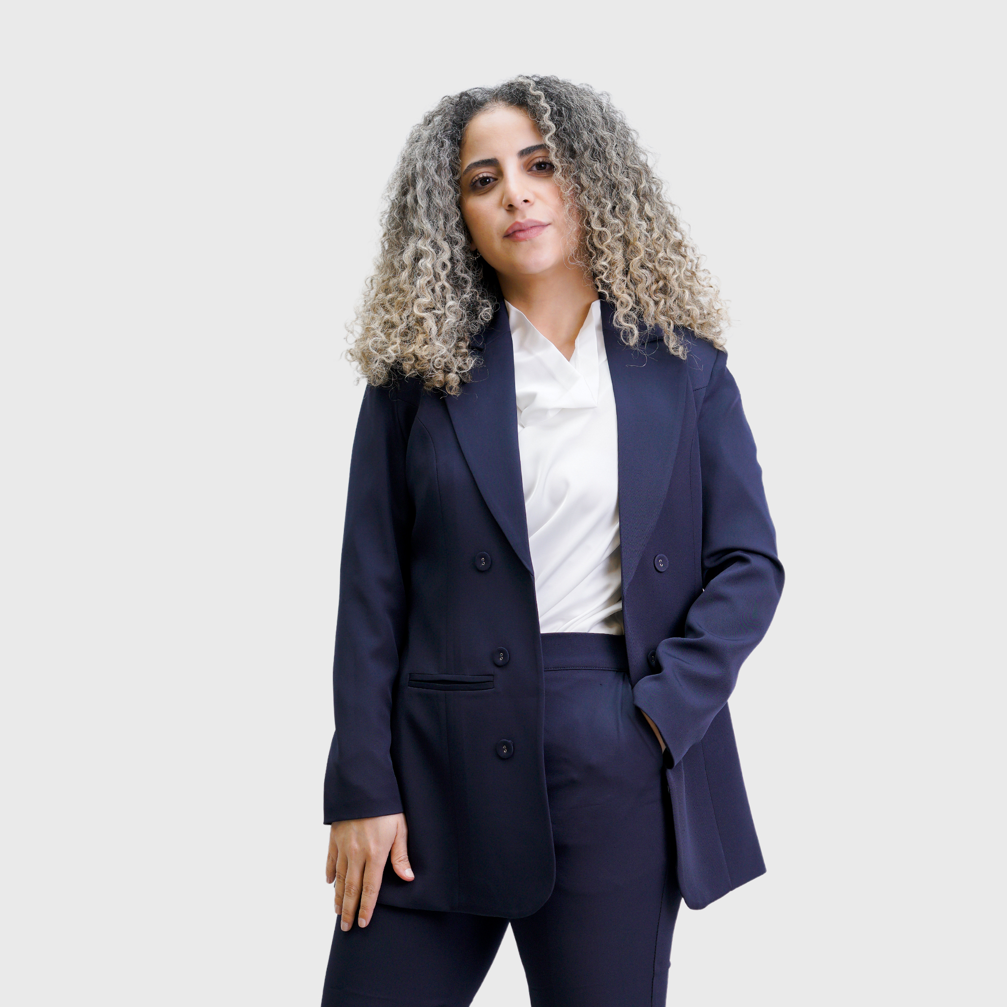 Navy-Blue Long plain Blazer with long sleeves, and six front buttons