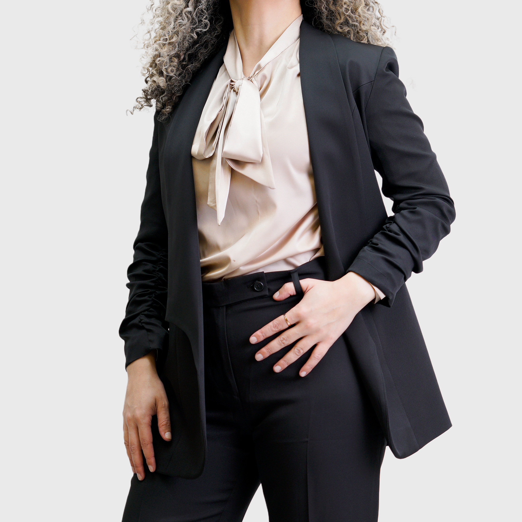 Black Long Blazer with a long ruffled sleeves