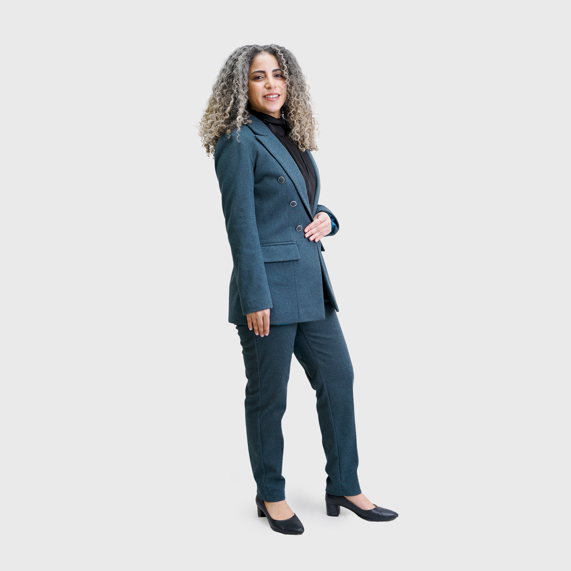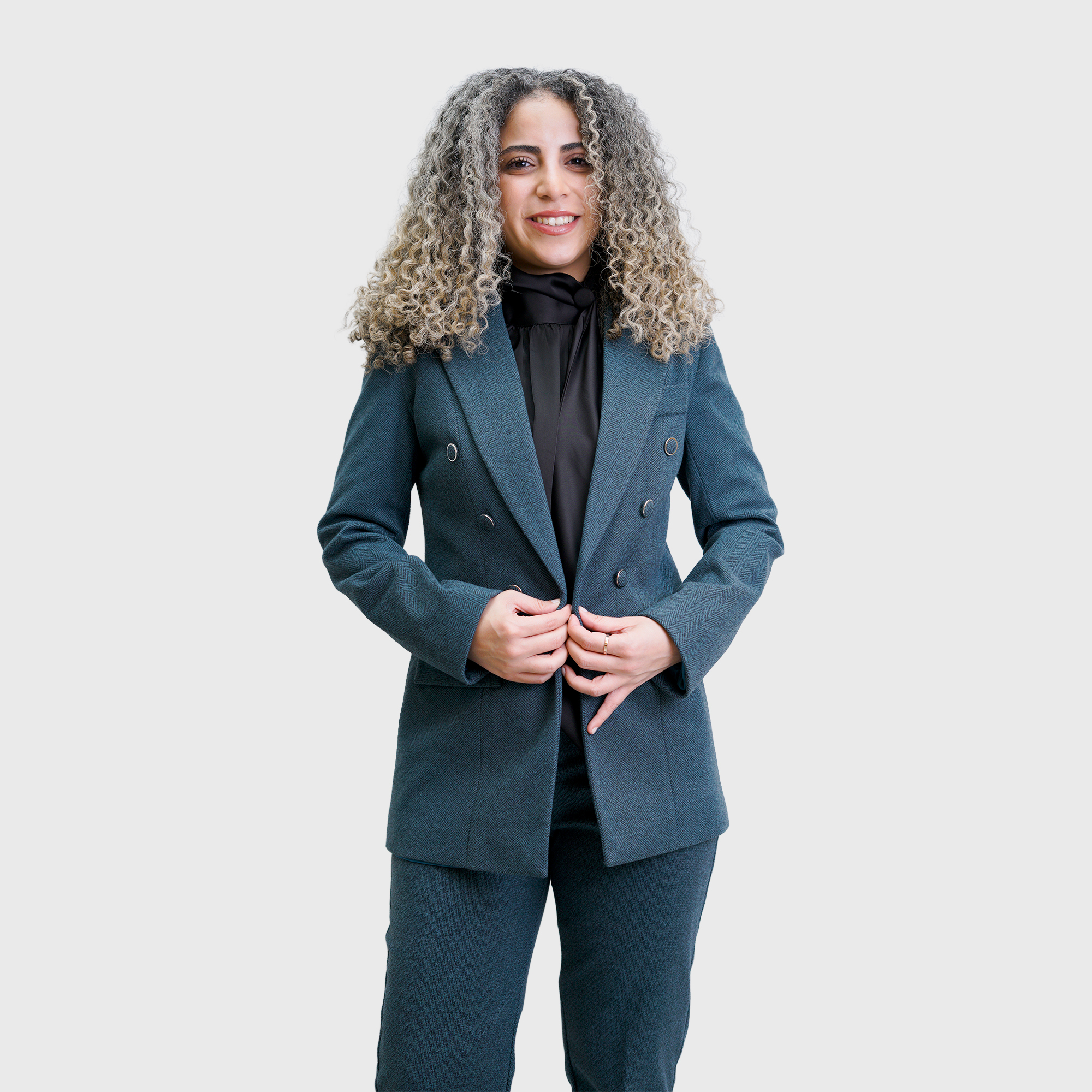 Petrol Blue Long winter Blazer with long sleeves, and six front buttons