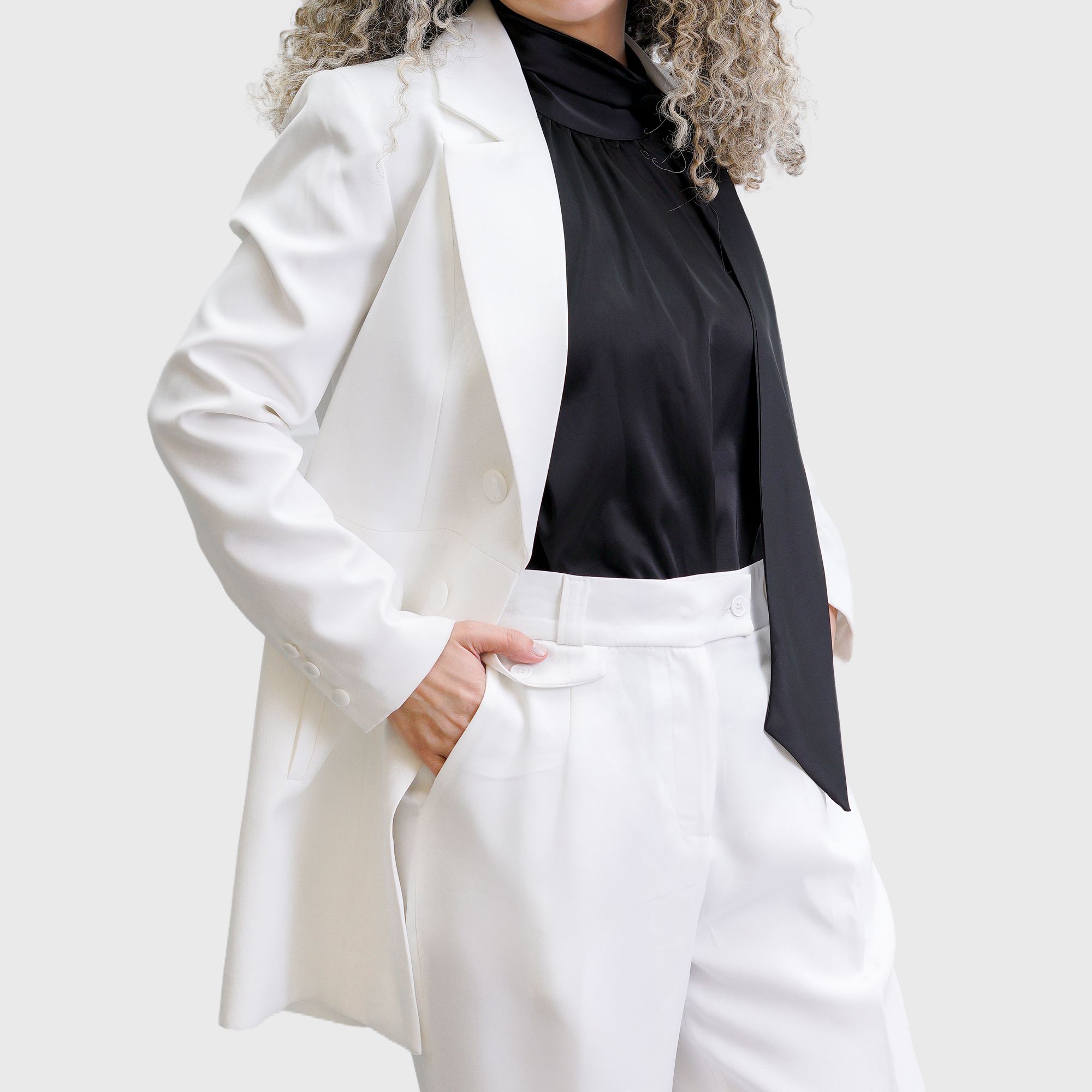 White Long Blazer with four front button