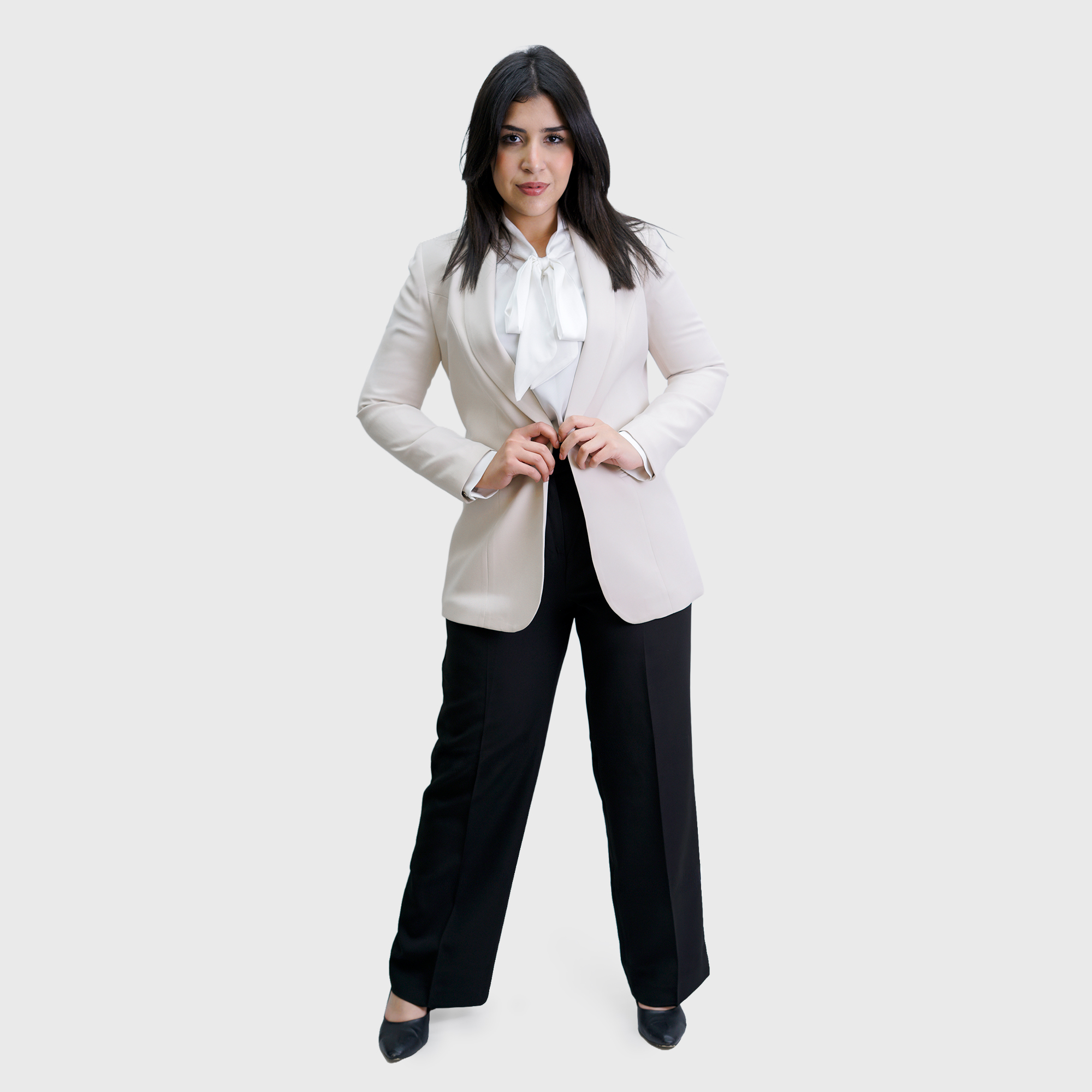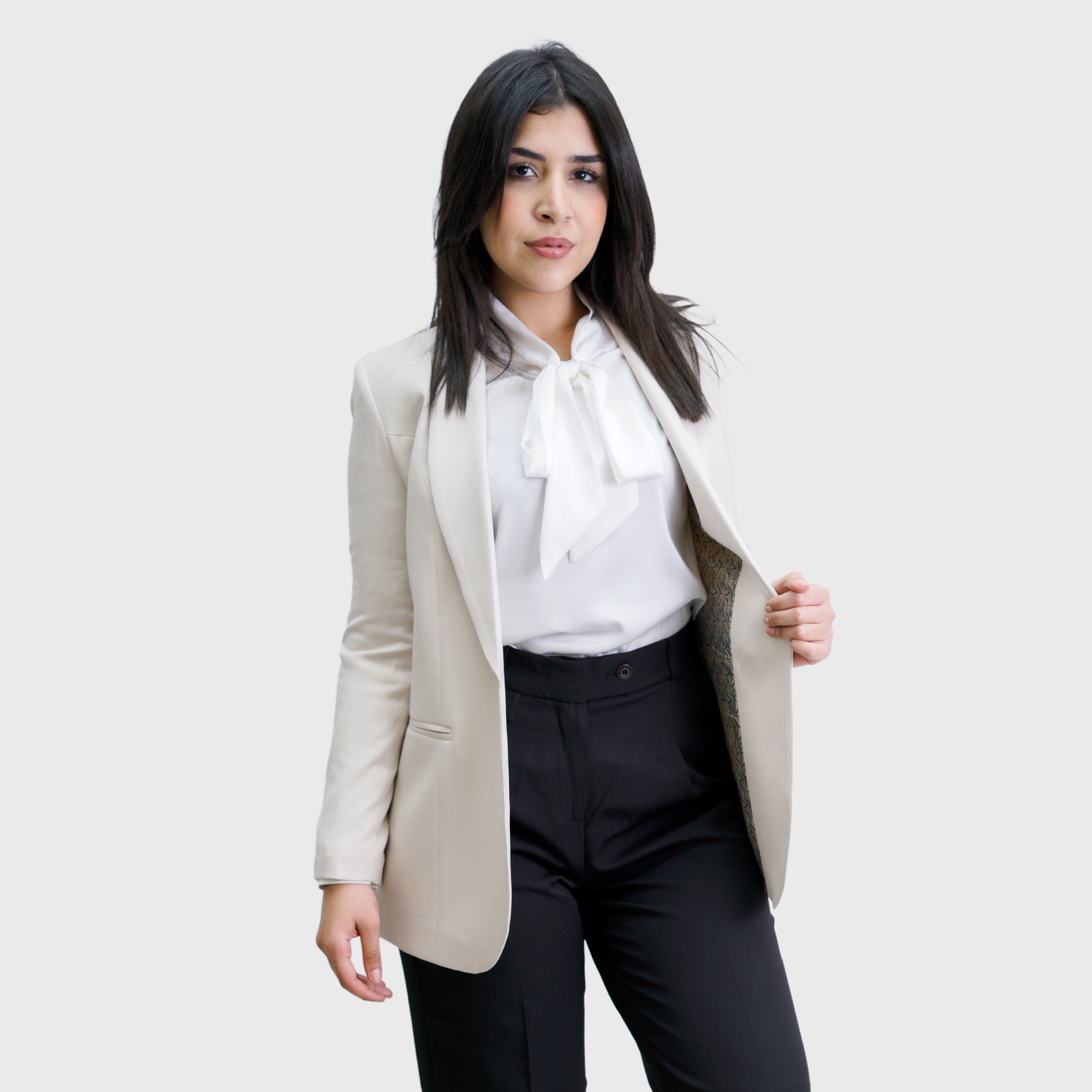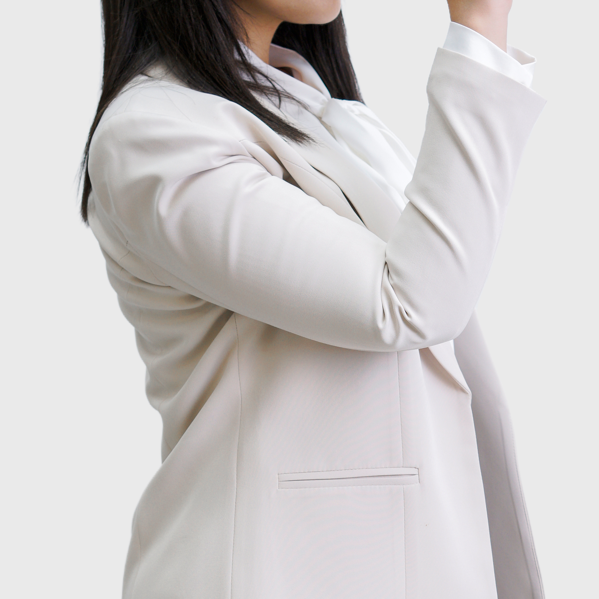 Beige Long Plain Blazer