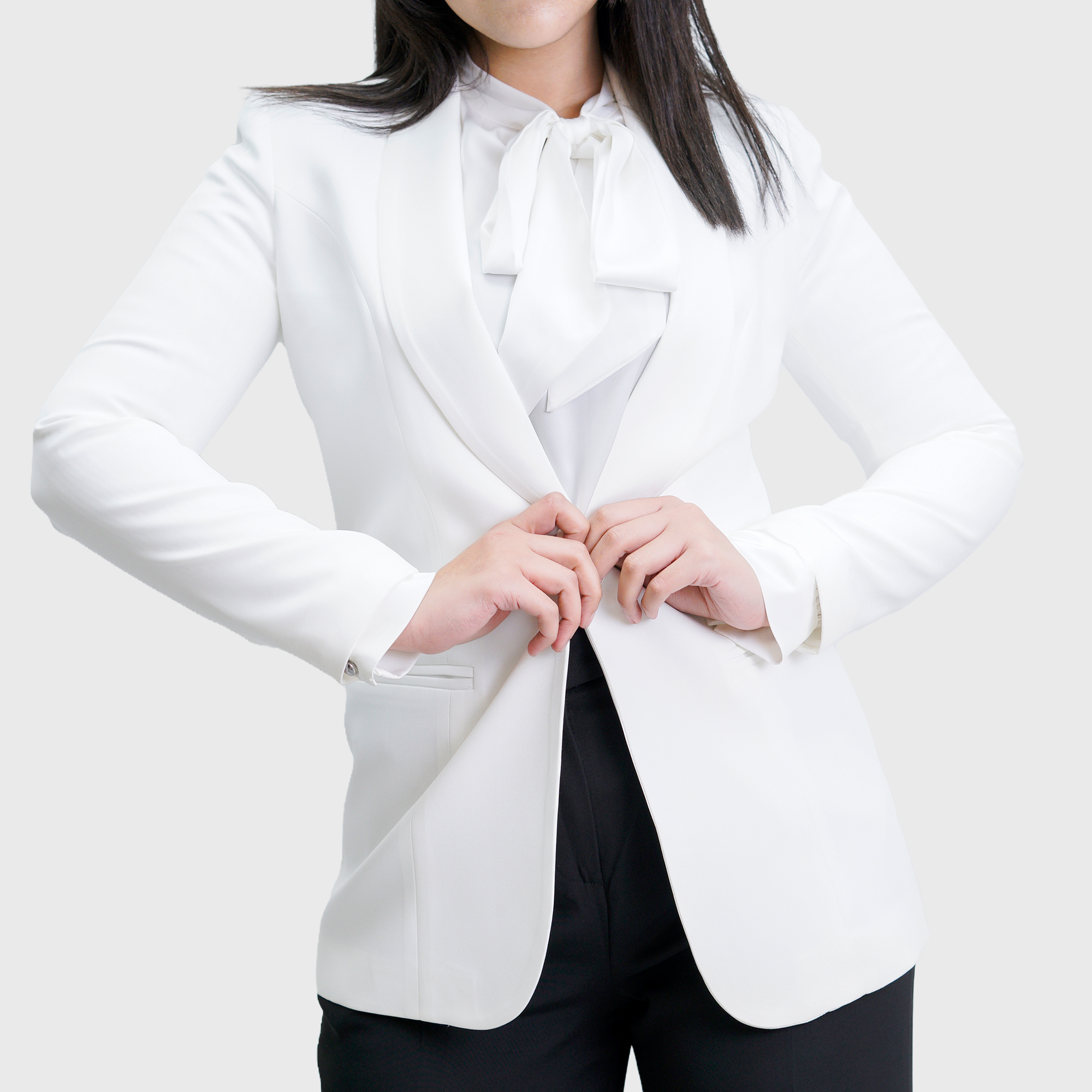 White Long Plain Blazer