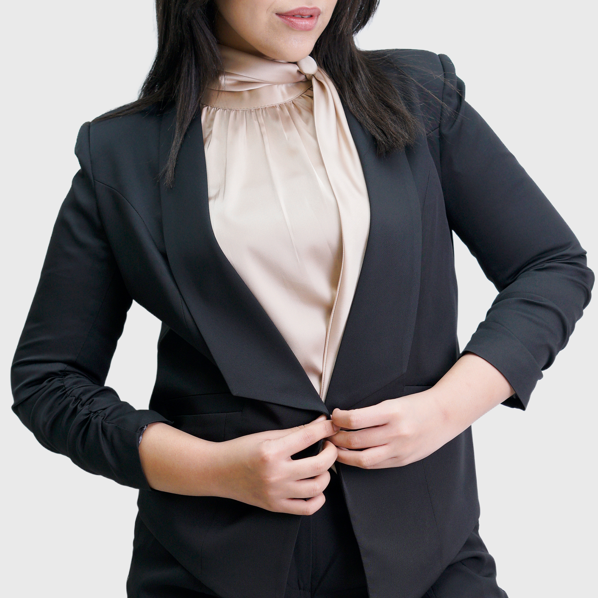 Short Blazer with an extended shawl collar and elasticated ruched sleeves