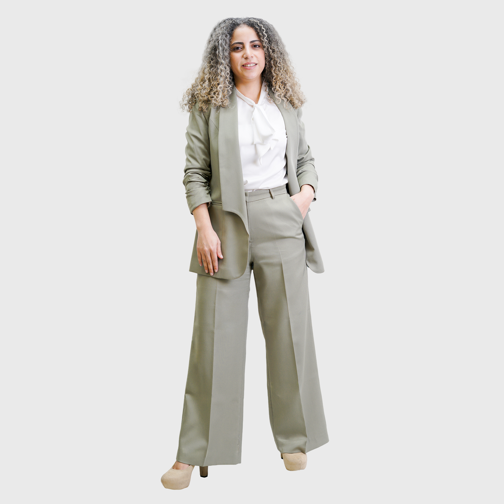 Light Olive Long Shawl Collar Blazer