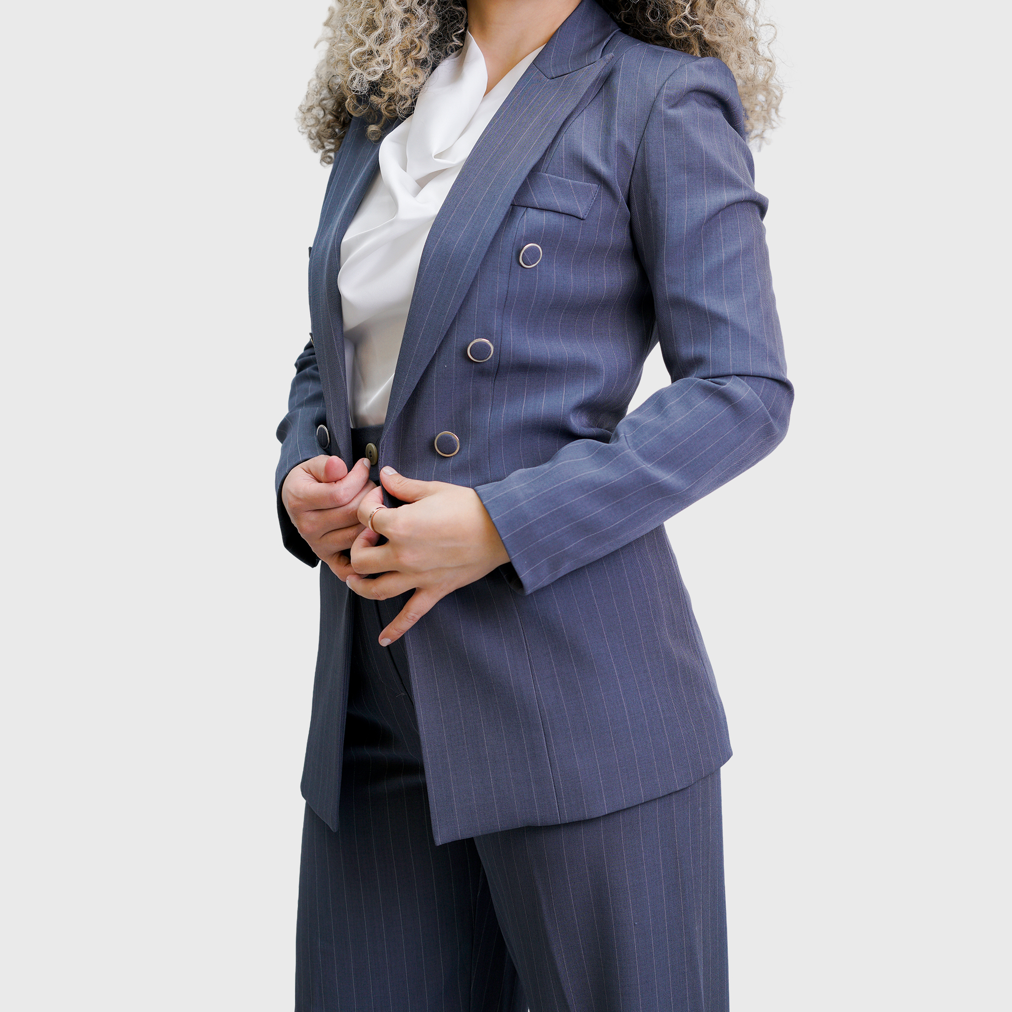 Dark Grey Long Striped Six-Button Blazer