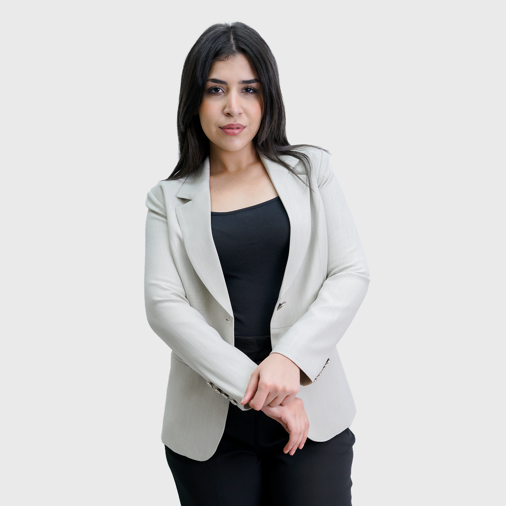 Light Grey Long Sleeve Blazer with Notched Lapel
